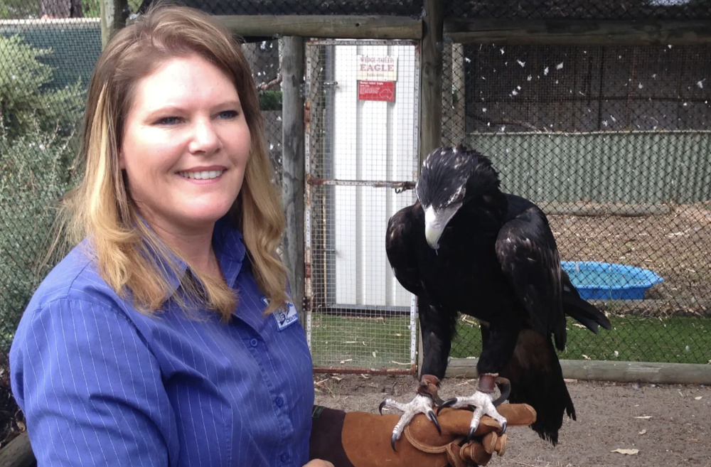 Yvonne Sitco with Micro, a juvenile Wedge-tailed eagle. David Allan-PETALE